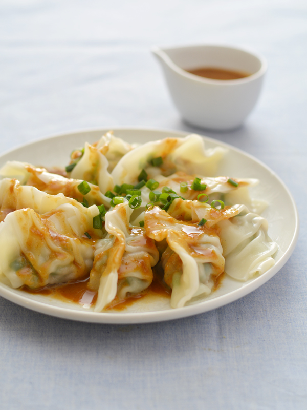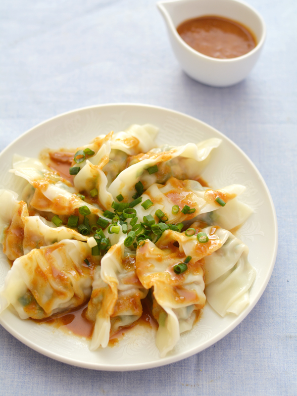 なめらか自慢ねりごま(白)、純正ごま油、ごまらー油で作る香味野菜も入った麻辣だれ。ニラと白菜の入った食感が楽しい水餃子でいただきます。ピリッとした花椒の入った「麻辣だれ」をたっぷりかけてもちもちの水餃子をどうぞ!