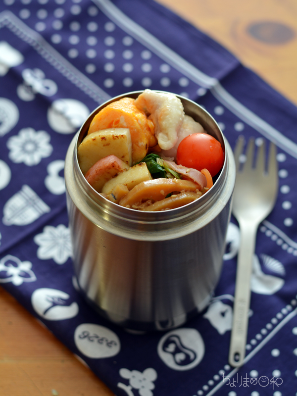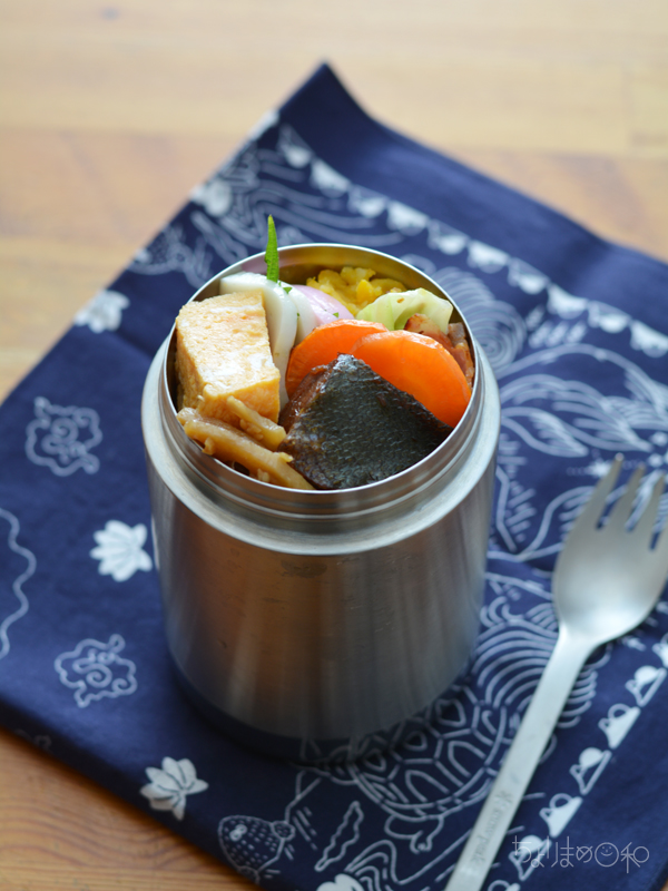 今年もスタートしました!コンテナ弁当。もんちゃんの ”フェイむす” 弁当も入ってます~。