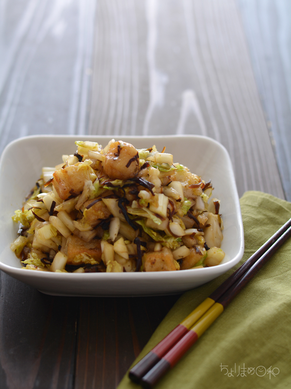 焼き餅と白菜の塩昆布サラダ