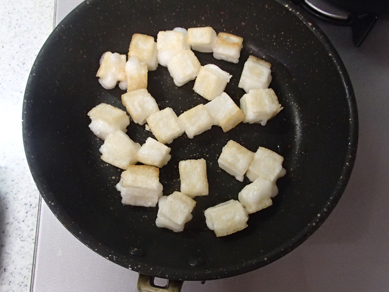 ごま油でカリっと焼いたサイコロサイズのお餅。