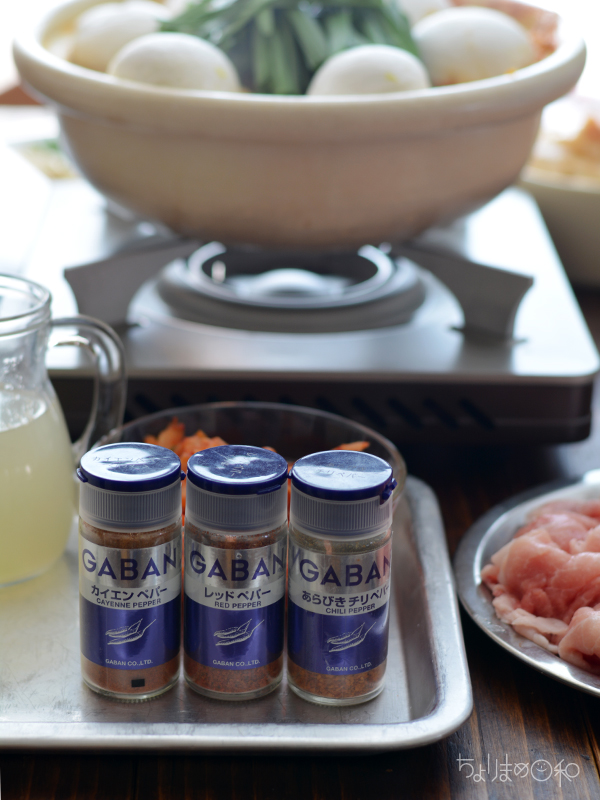 GABANカイエンペパー、あらびきチリペパー、レッドペパー。