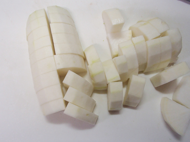 ・大根は皮をむき、厚さ1cmのいちょう切りにする。