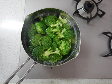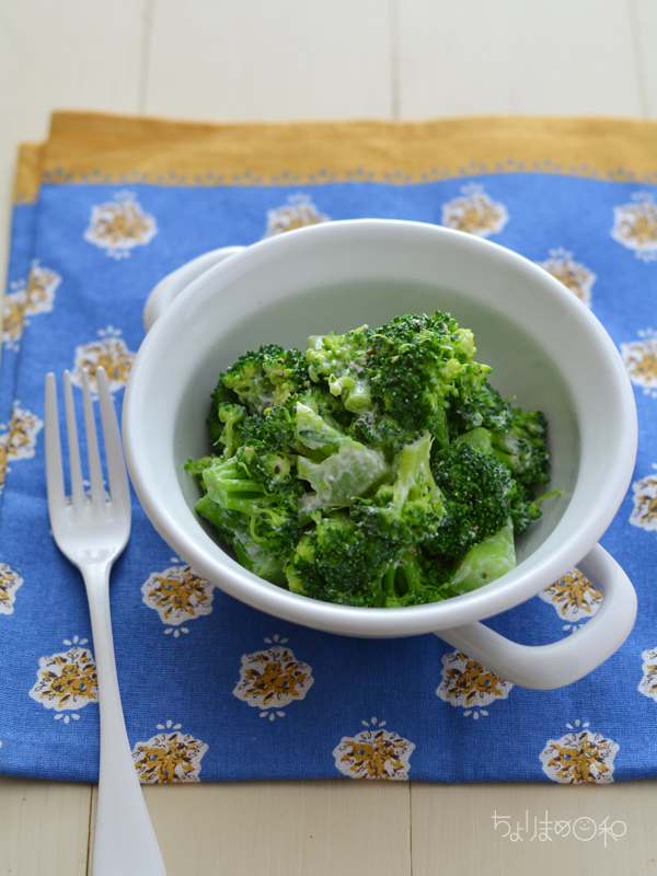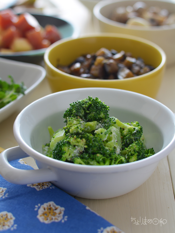 1.沸騰した湯に塩気を感じる程度の塩を入れ、ブロッコリーをゆでる。盆ざるに広げて冷ます。