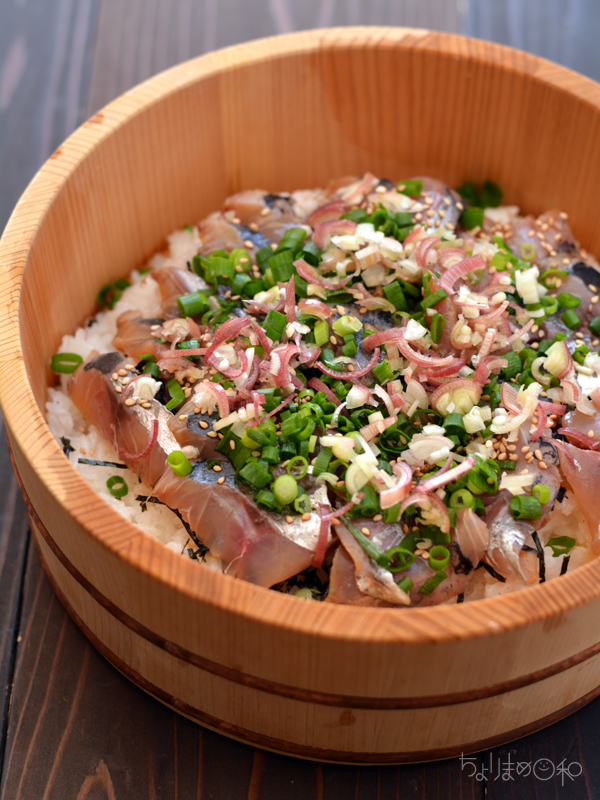 切ったアジを漬け込んで、あたたかごはんにのせるだけ。