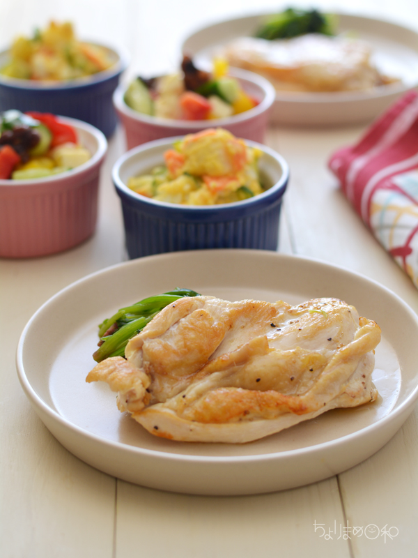鶏むね肉のソテーは蒸し焼きでしっとり&ジューシー感を出していたのですが、