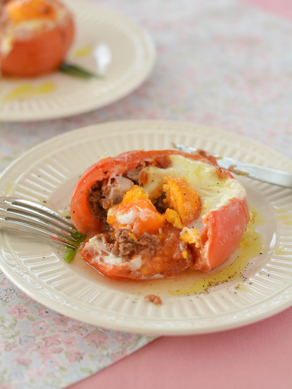 味付けした肉だねをトマトの中に入れて、卵を落として焼いて出来上がり!さっぱりしているのに見た目もかわいい、あっさりといただけるトマトのココットです♪くりぬいたトマトは、トマトソースにいれたり、ミネストローネなどに使うほか、フレッシュトマトのパスタソースもおすすめです。これからの季節にはオリーブ油、しょうゆと合わせて冷奴のたれなどにも使えます。