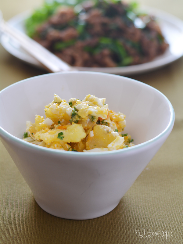 えっと・・・これは・・・で蒸したじゃがいもと卵。