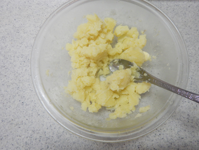 1.じゃがいもは温かいうちに皮をむき、バターを合わせてフォークで切るように混ぜる。