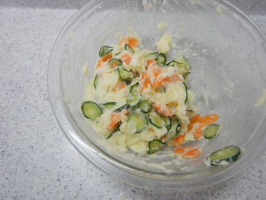 3.にんじん、きゅうり、Aを入れて和える。塩で味を調える。