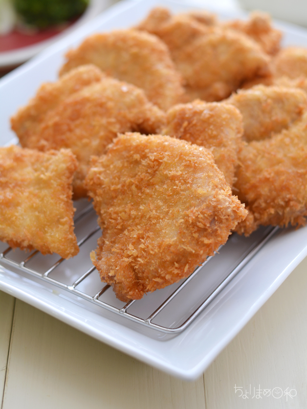 いわゆるとんかつの手順で薄力粉、溶き卵、パン粉の衣をまとわせて、