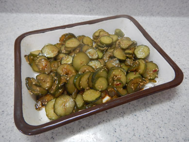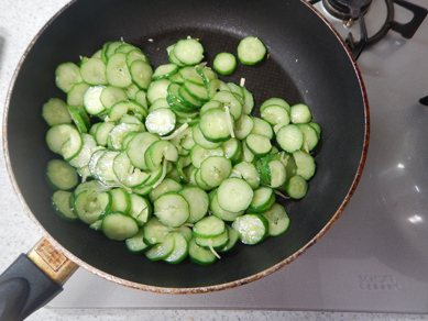 3.きゅうりに火が通りはじめたらAを加えて汁気がとぶまで炒める。仕上げに唐辛子を入れてひと炒めする。