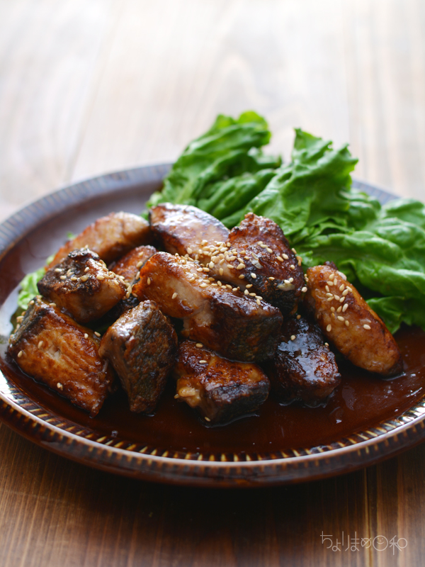 塩水処理したブリに粉をふってこんがりと焼いたら、