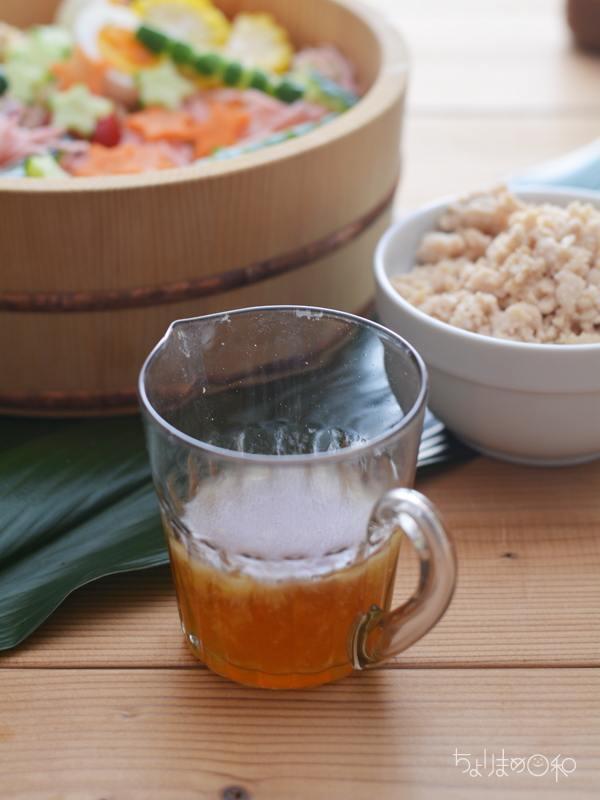 この出汁を冷水でわってそうめんと鶏そぼろと一緒にいただきます~!