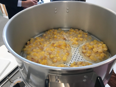 さつまいもに砂糖絡めて、粉ともち米などを合わせて蒸す料理。
