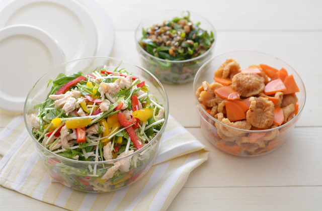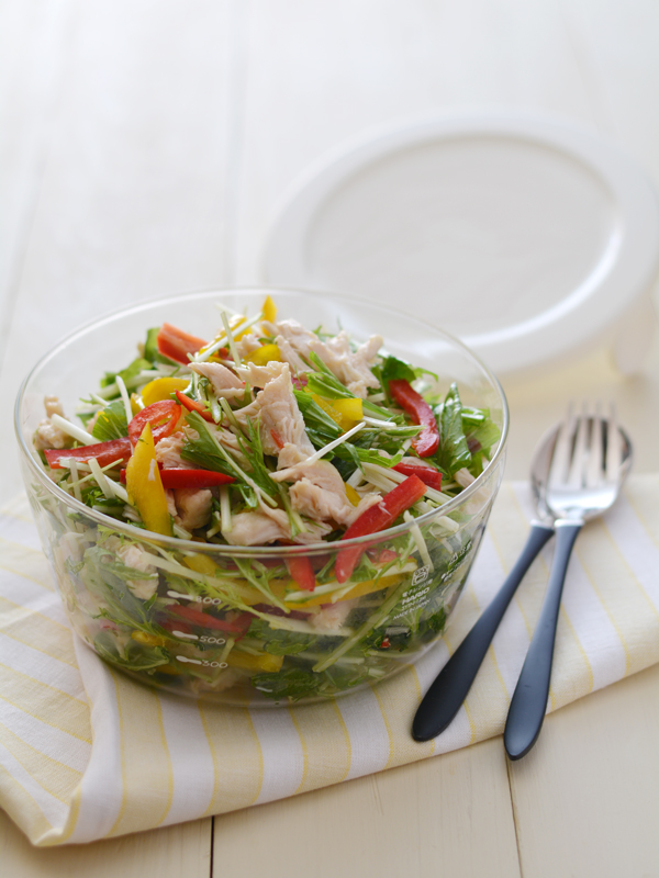 1200mlはたっぷりなので、ササミと水菜のマリネを入れました。