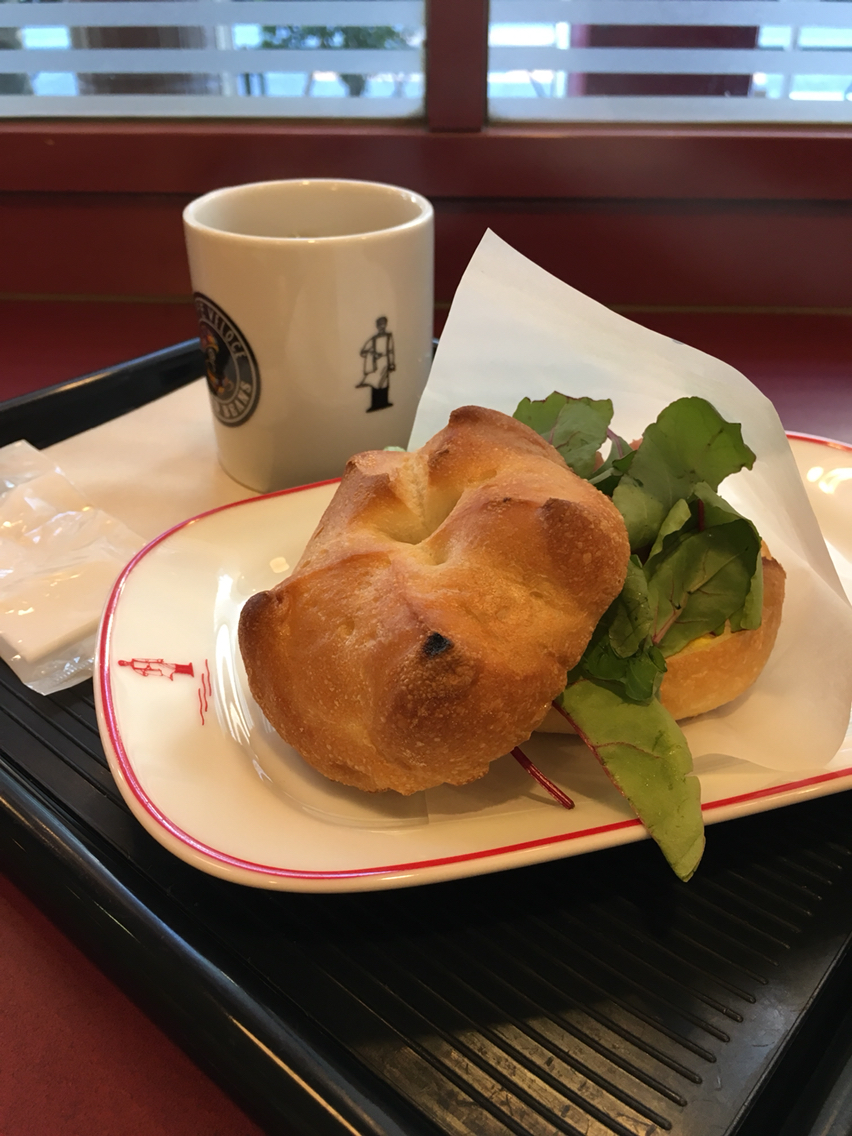 カイザーロールのベーコンエッグにしました。(´ι_` )