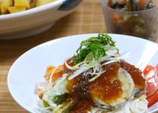 ぷるぷる寒天つゆ・野菜天そうめん。豚ひき肉味噌じゃが。の晩ご飯。