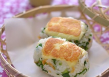 チーむす-焼きチーズとエビニラおむすび。と昨日の晩ごはん。