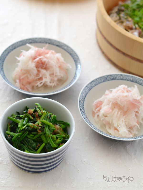 (渋い)ちょりの大好きなほうれん草のおかかオイル和え。