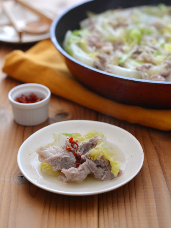 白菜と豚肉のフライパン蒸し ナンプラー仕立て