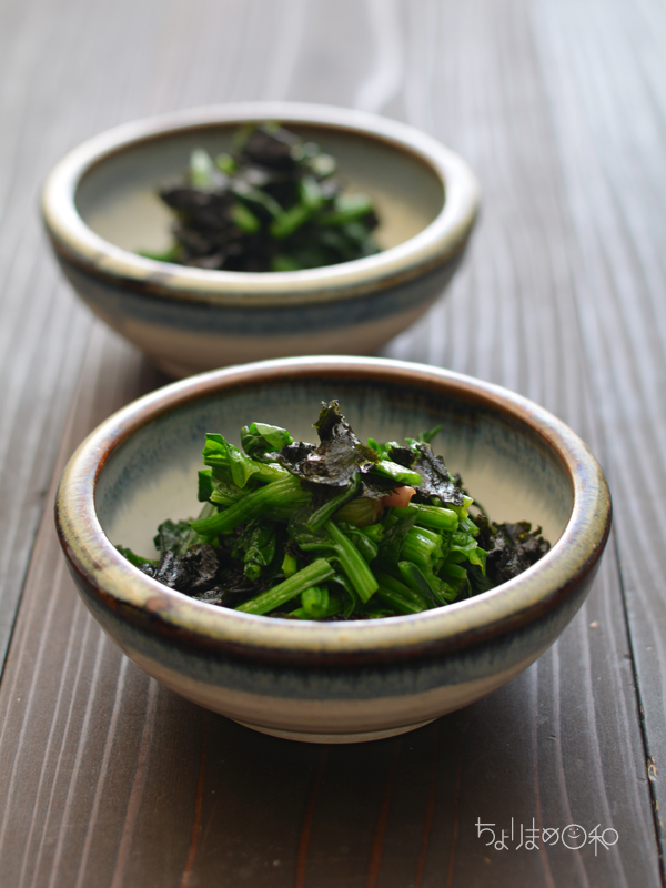 塩ゆでしたほうれん草をしょうゆで洗ってから、