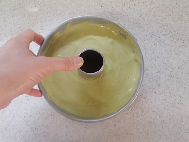 6.170℃のオーブンで約40分焼く。型ごと逆さにして冷ます。