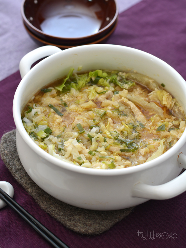 白菜と鶏むね肉。そこにねぎと豆乳も加えました。
