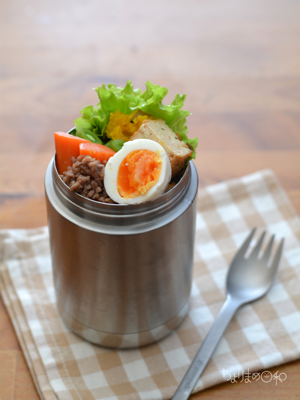 #コンテナ弁当 #やさお弁当 #肉味噌 #ゆで卵 #作り置き #そぼろ弁当