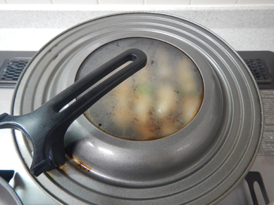 火を止めて蓋をして蒸らして鶏肉に火を通します。