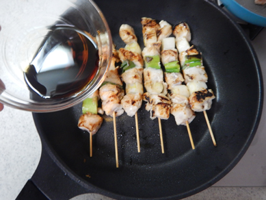 とろみががかるまで煮詰めて、焼き鳥にかけて出来上がり。