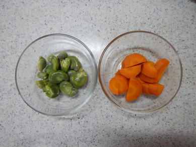 スリッシュで蒸したにんじんとそらまめ。