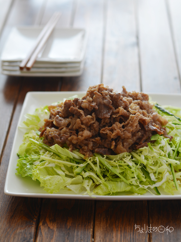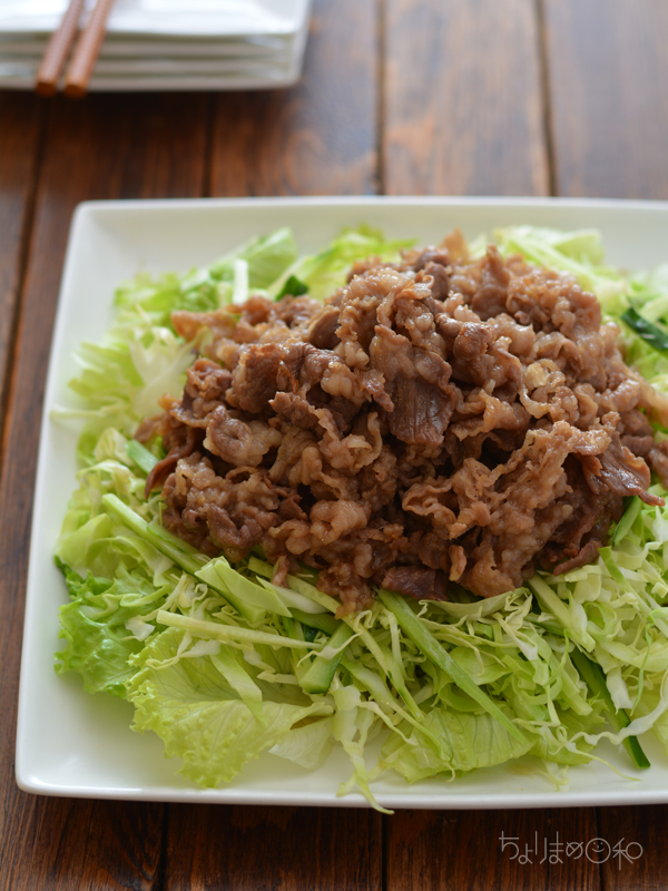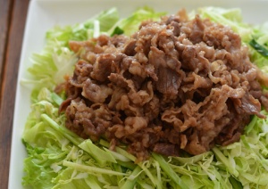 しょうが風味の牛肉をのっけました~。