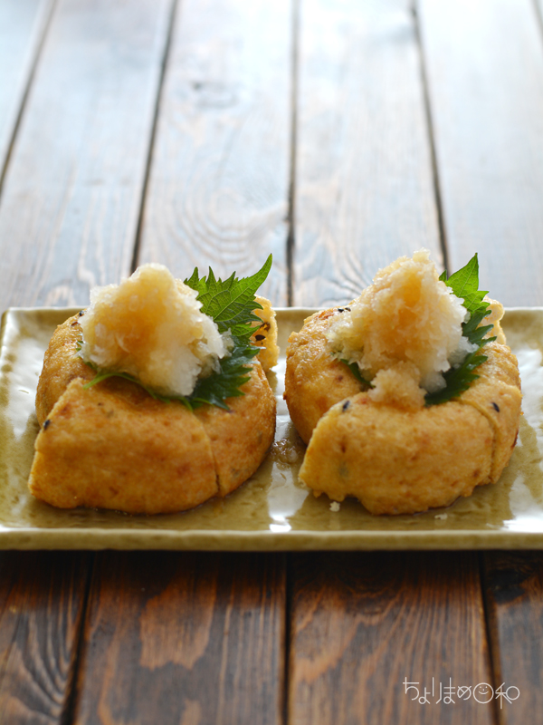 なんてことない、がんもにおろしぽん酢をのせた、