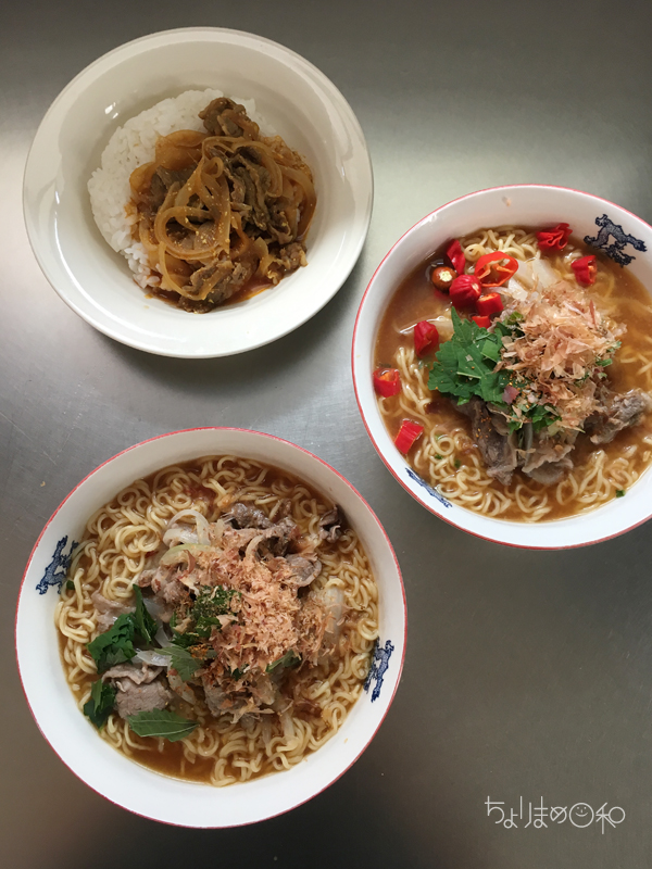 よくやるのが、レンジカレーとラーメン(インスタント)です。(゚∀゚)