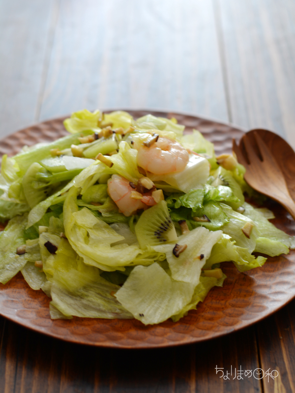 野菜は冷蔵庫のありもので作ったフルーツ入りサラダです。