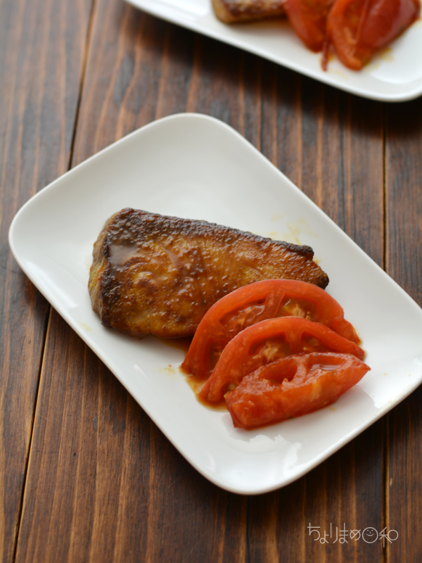 トマトを入れて焼いたら、しょうゆ、みりんで調味。