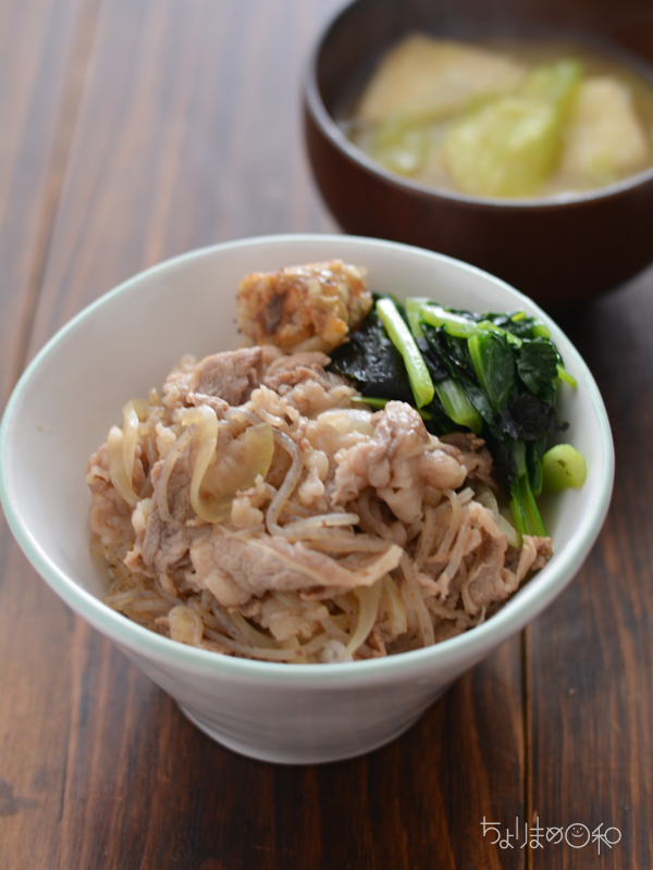 牛丼の具・もちもちエリンギ丸・小松菜ののりお浸し
