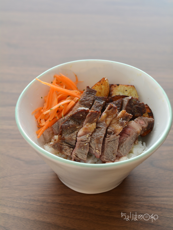 ステーキ・にんじんサラダ・蒸し焼きポテト