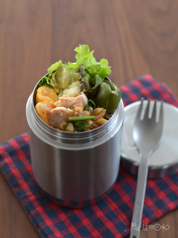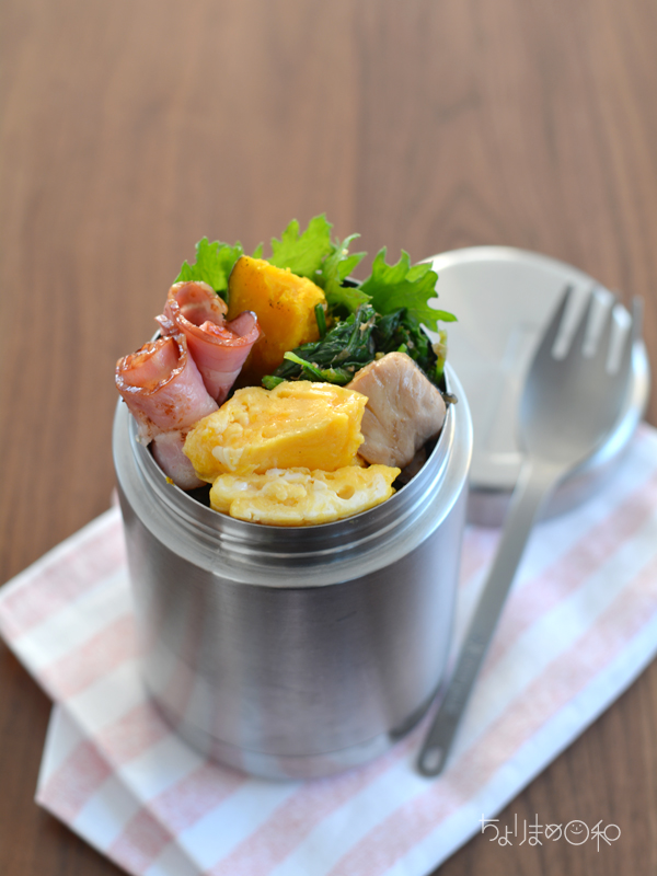 前夜の取り置きなどを入れた、卵焼きは作り置きで成り立つお弁当。