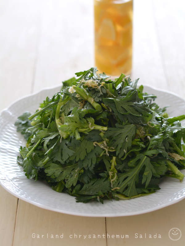 オリーブ油でしらすをカリカリに熱して、春菊と和えて塩で調味。