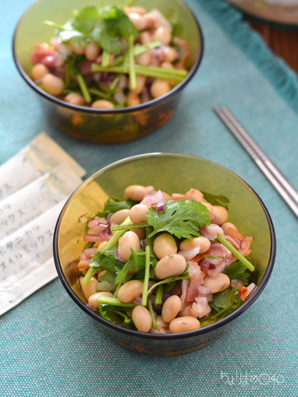 サラダ豆や大豆の水煮を使った簡単レシピ。