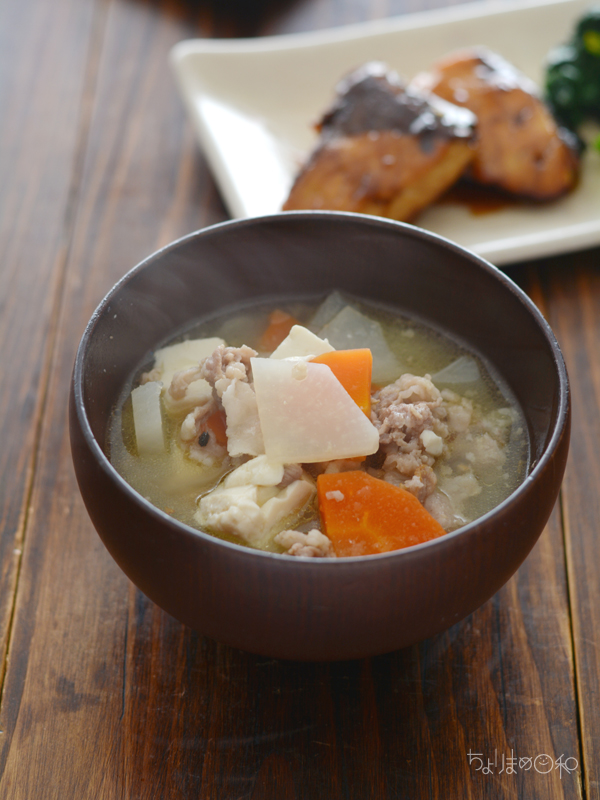 大根、にんじん、たっぷり入れた根菜汁を。