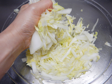 白菜は塩もみして合わせ調味料をで和える。