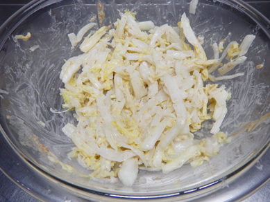 3.白菜の水気をしぼり、【2】に加えて和える。塩で味を調える。
