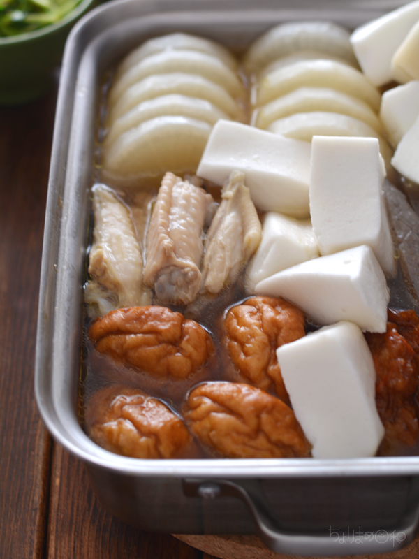 今回は手羽中を入れて鶏出汁も加えました。