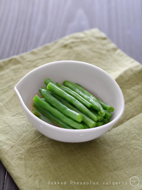 いんげんは塩ゆでして、食べやすい長さに切る。
