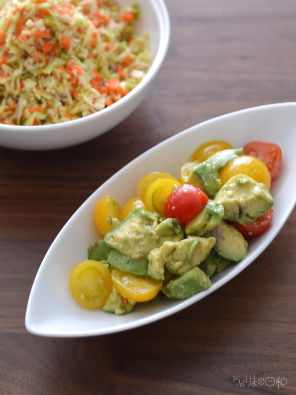 撮影の残りのアボカドとお友達からいただたミニトマト。
