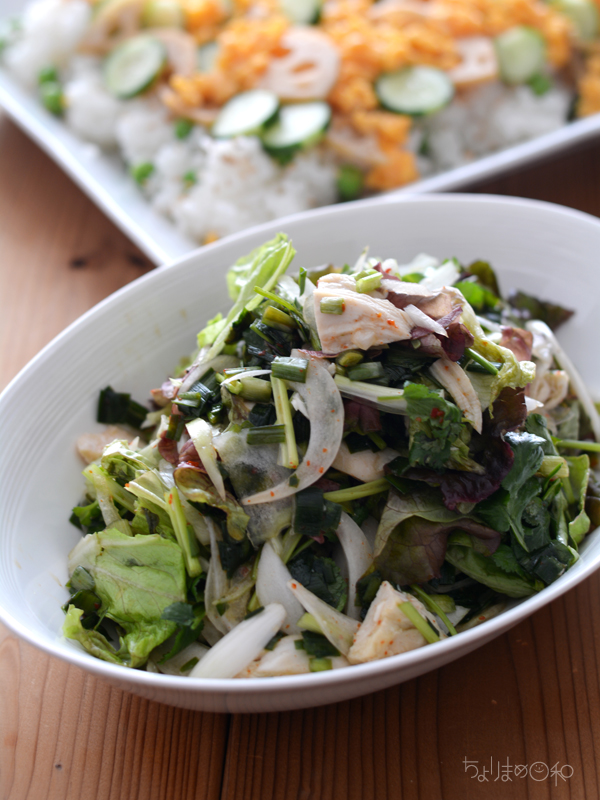 酢飯に野菜をのせたそのまま食べても美味しい「やさいちらし寿司」。