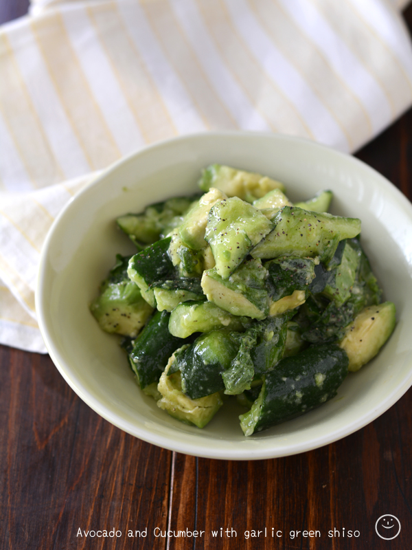 1.きゅうりは花つき、枝つきをとり、めん棒で叩いて手で割く。アボカドは小さめに切る。