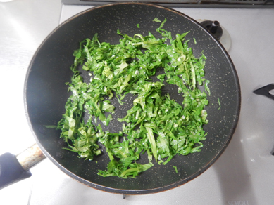 3.茎に火が通ったら、隙間をあけてAを入れて全体を混ぜながら強火でさっと炒める。味が足りない場合は塩で調味する。